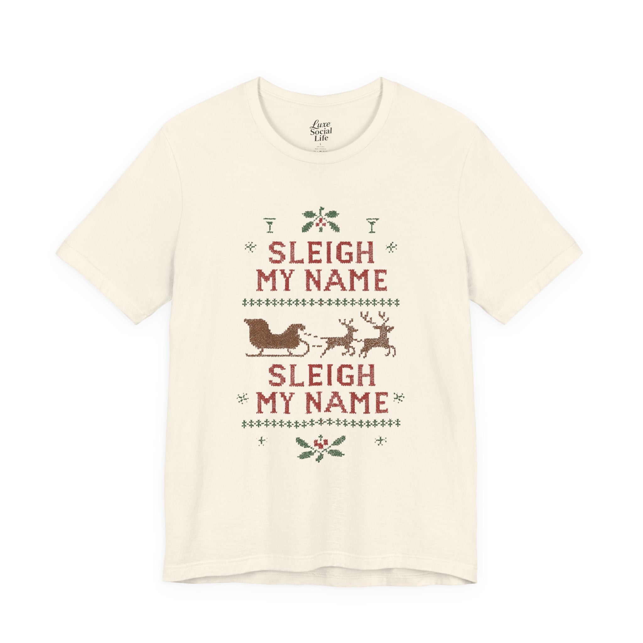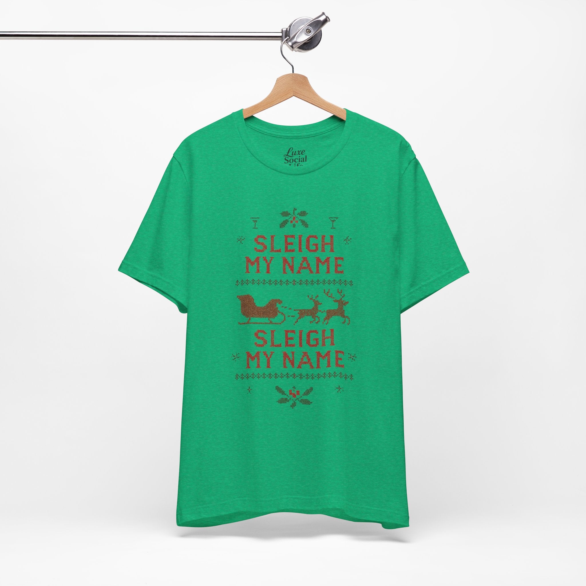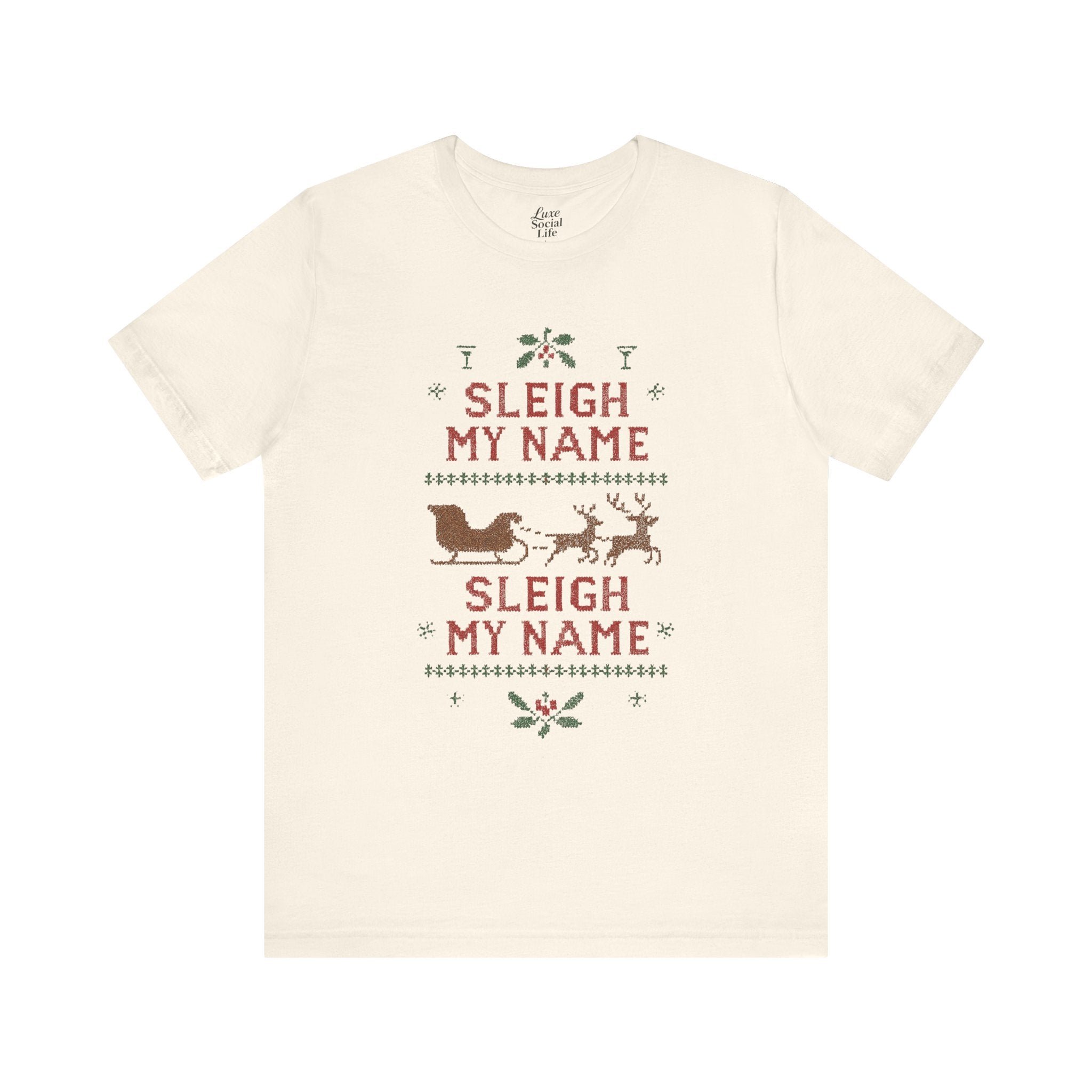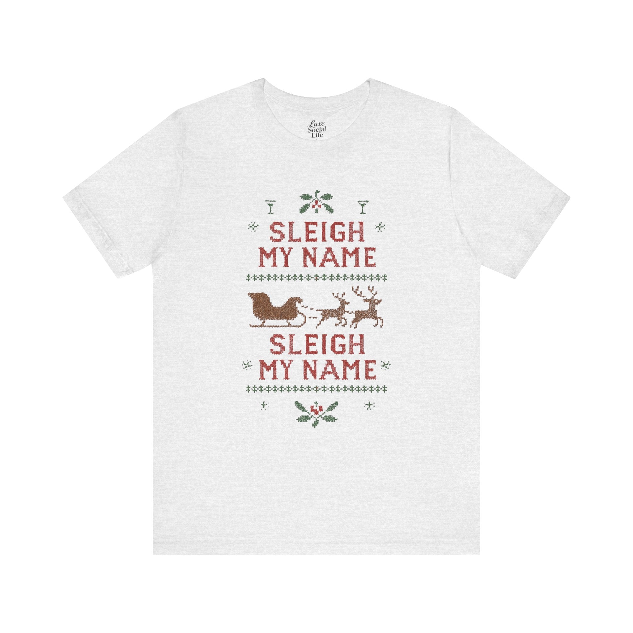 Embrace the holiday spirit with this whimsical Unisex Jersey Short Sleeve Tee that features a playful Sleigh my Name, Sleigh my Name design. Made from 100% Airlume combed and ring-spun cotton, this tee is lightweight and breathable, making it perfect for layering during those festive gatherings. Ideal for casual brunches or cozy nights in, it's a great conversation starter for fans of playful holiday humor. The classic crew neckline adds a touch of sophistication, making it suitable for semi-formal occasions as well. Perfect for adults who appreciate a bit of cheeky charm in their wardrobe, this shirt is a fun gift for Christmas parties, family gatherings, or as an amusing everyday wear during the holiday season. Wear it proudly while spreading cheer during the most wonderful time of the year!