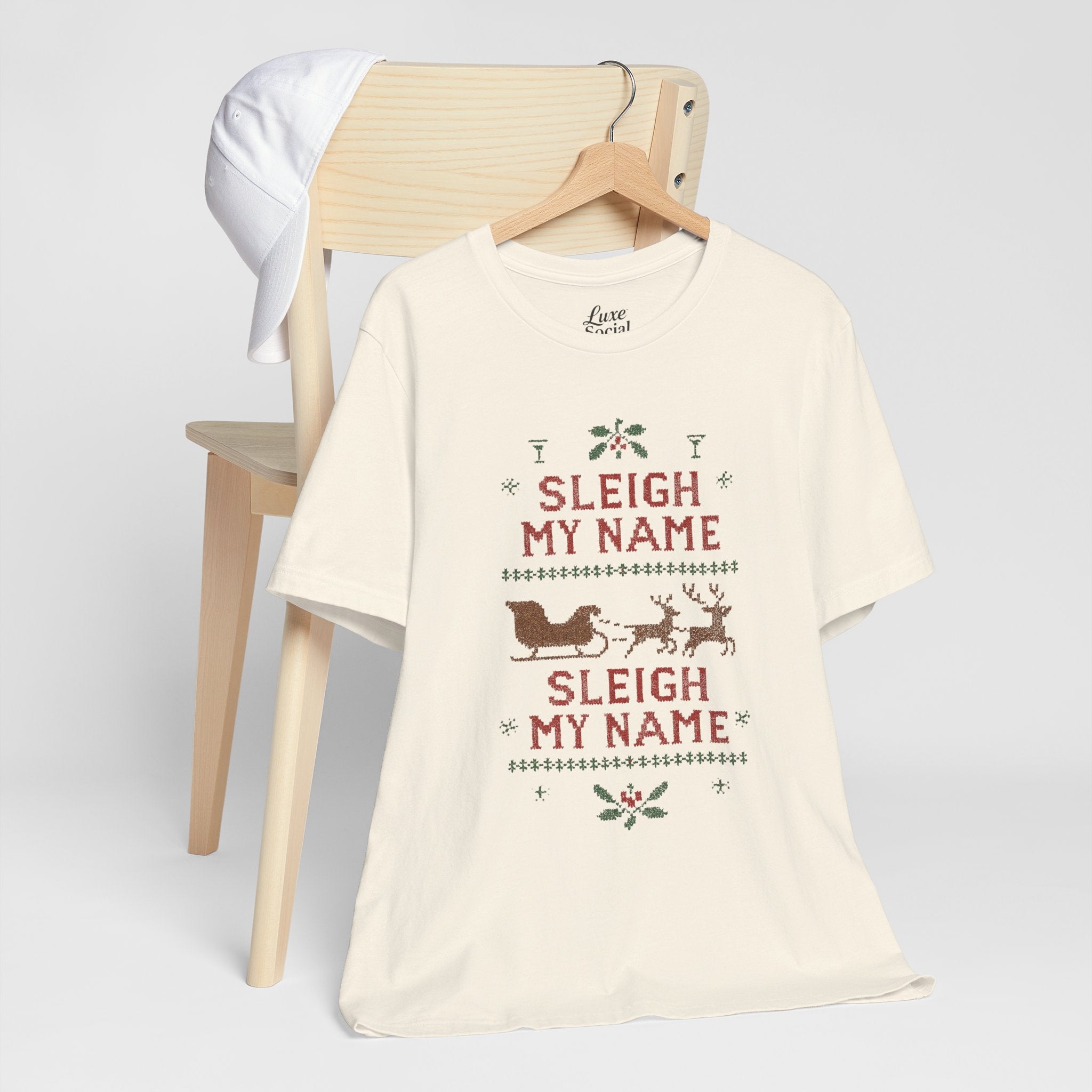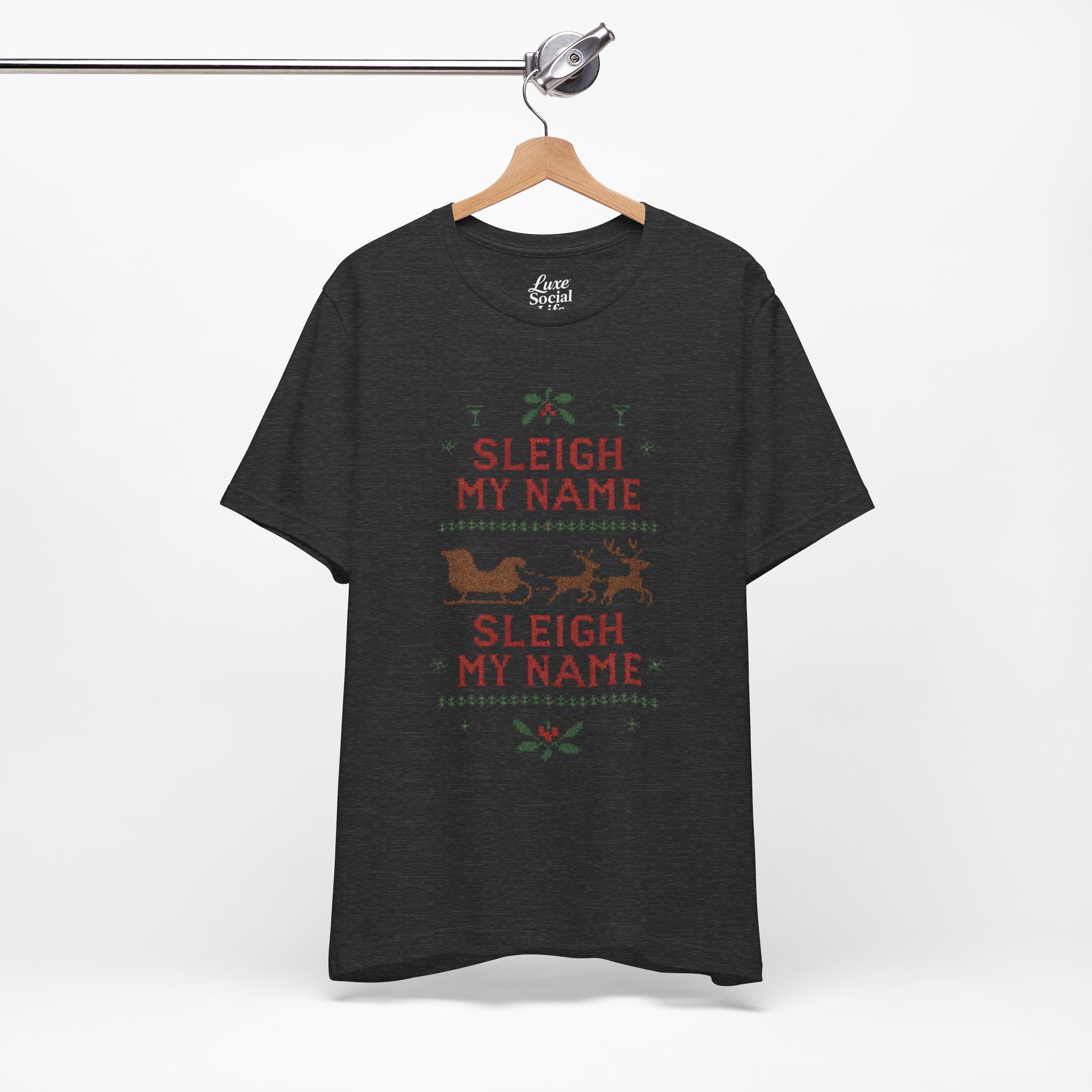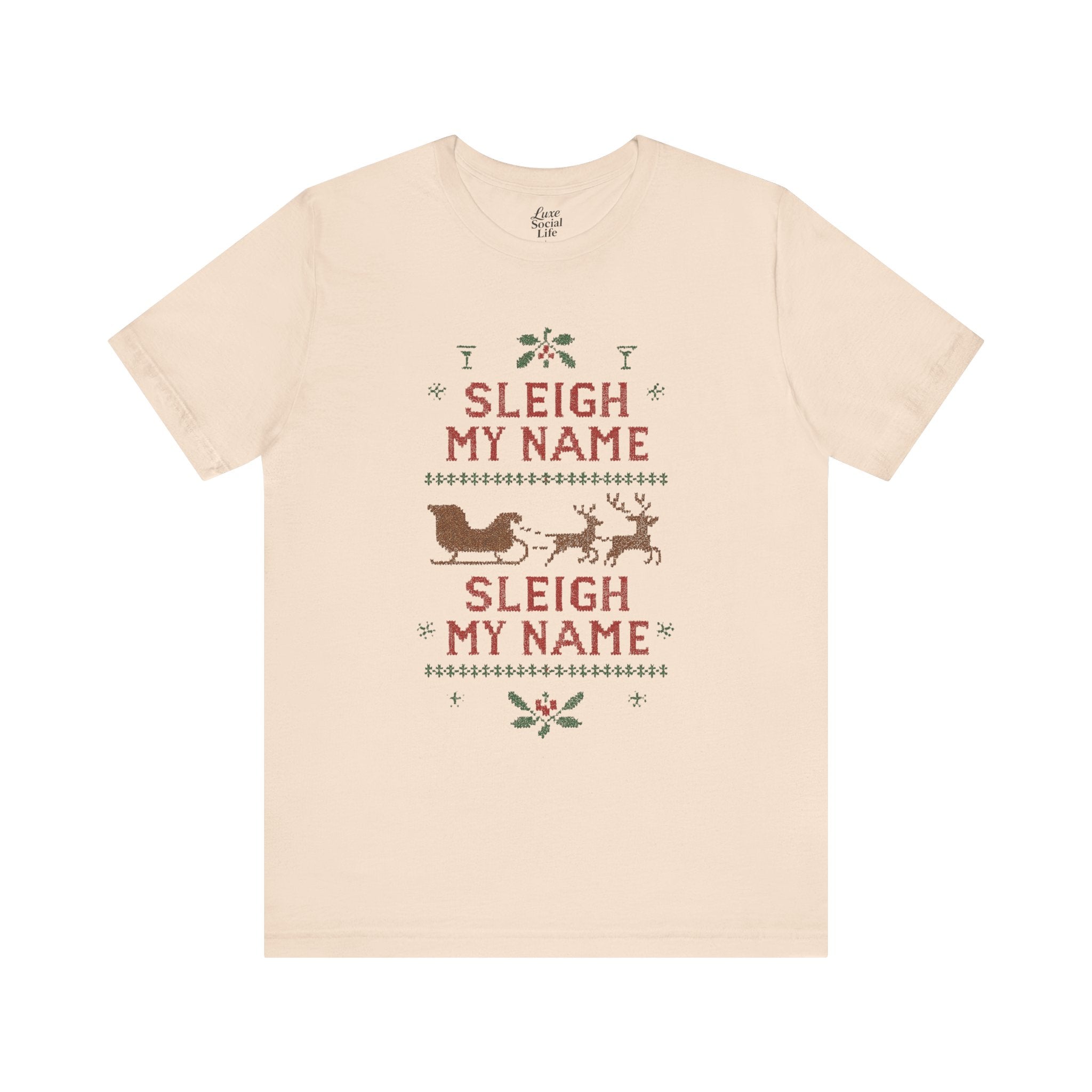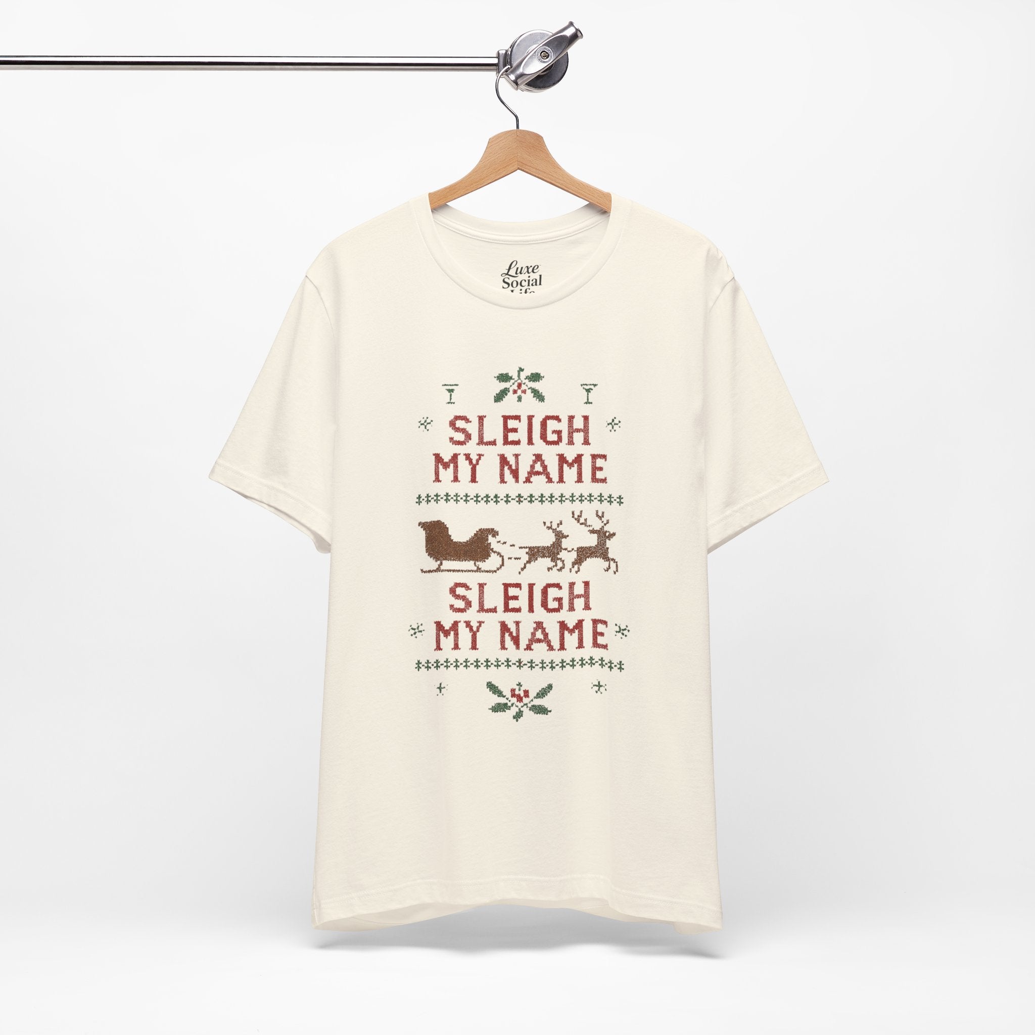 Embrace the holiday spirit with this whimsical Unisex Jersey Short Sleeve Tee that features a playful Sleigh my Name, Sleigh my Name design. Made from 100% Airlume combed and ring-spun cotton, this tee is lightweight and breathable, making it perfect for layering during those festive gatherings. Ideal for casual brunches or cozy nights in, it's a great conversation starter for fans of playful holiday humor. The classic crew neckline adds a touch of sophistication, making it suitable for semi-formal occasions as well. Perfect for adults who appreciate a bit of cheeky charm in their wardrobe, this shirt is a fun gift for Christmas parties, family gatherings, or as an amusing everyday wear during the holiday season. Wear it proudly while spreading cheer during the most wonderful time of the year!